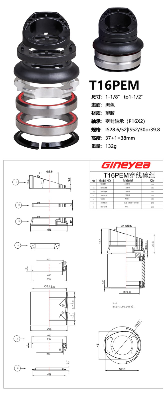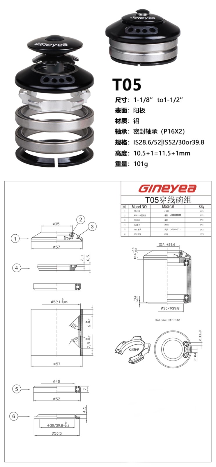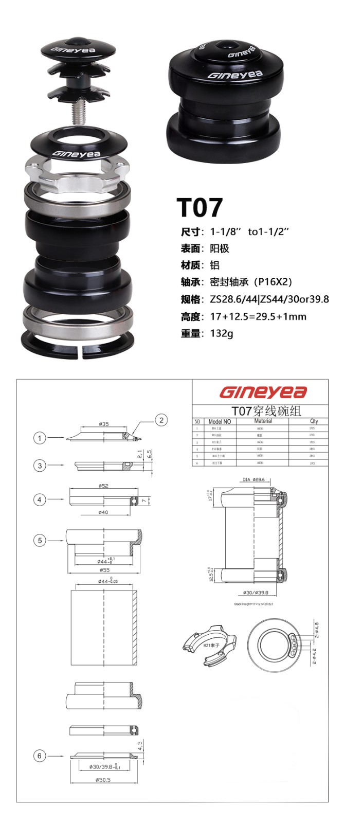 景曄直管穿線碗組44-44/52-52/改裝內走線穿線密封培林外置腕組