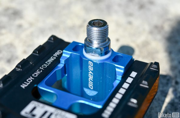 鉻鉬鋼軸心隱藏在中座內,精度高,可以在小空間內堅固、穩定地轉動,大力踩踏也不會松動。內部采用高品質雙自潤軸承,外部具有防塵蓋和密封環,雖然會帶來一些轉動阻力,但可以減少雨水灰塵進入軸心的幾率,大大提升腳踏的耐磨性和使用壽命。