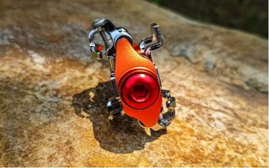 彈簧張力調整螺絲位于扣片后方。彈簧增加導流槽方式卡緊,長時間越野騎行也不會造成彈簧松動。